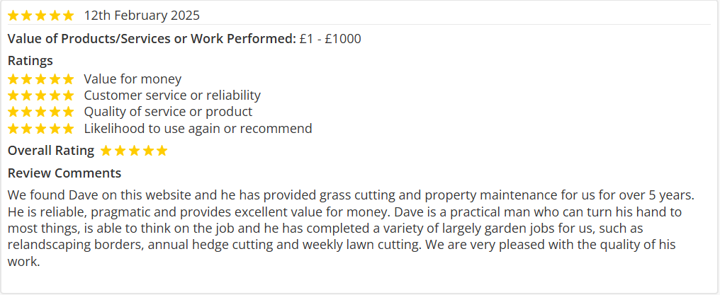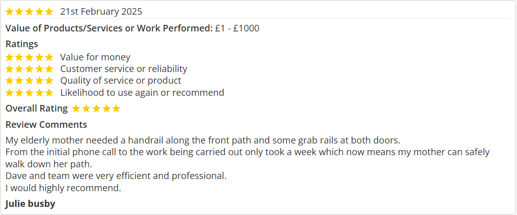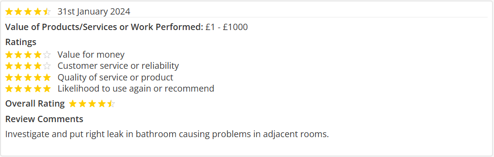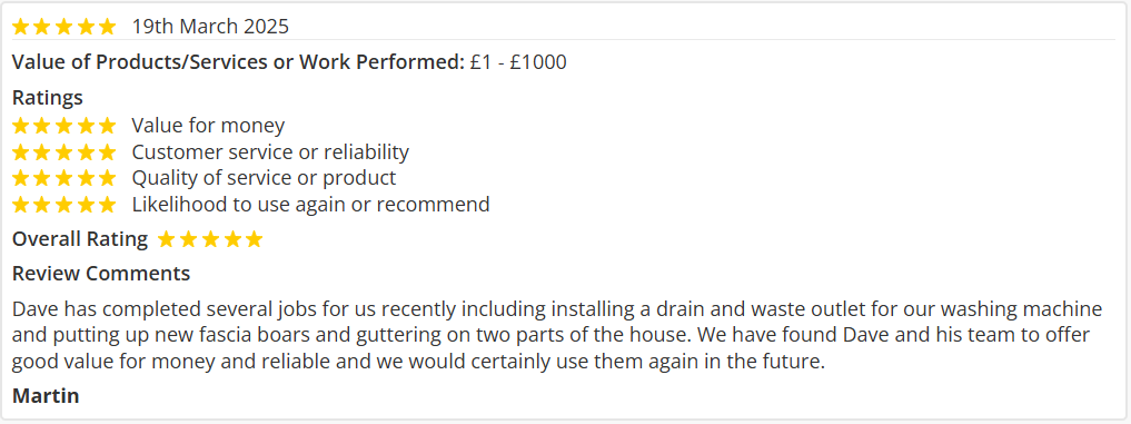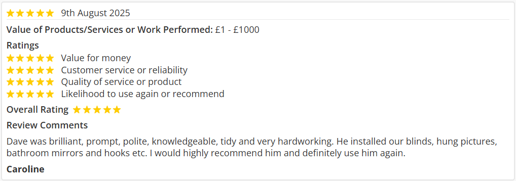 I have used this company for three years and have never been disappointed with their work, which has varied from erecting fences, clearing drains, replacing ballcocks and unblocking sinks etc. They are completely trustworthy and reliable, when they say they'll turn up, they do!
